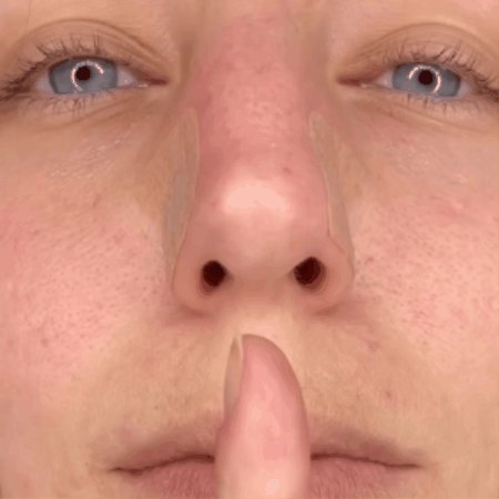 2. Przyklej dwa plastry – jeden z lewej, drugi z prawej strony nosa, mniej więcej na wysokości połowy nosa (tam, gdzie kończy się kość, a zaczyna chrząstka). Przyklej je delikatnie, ale dokładnie – tak, żeby dobrze trzymały się skóry.